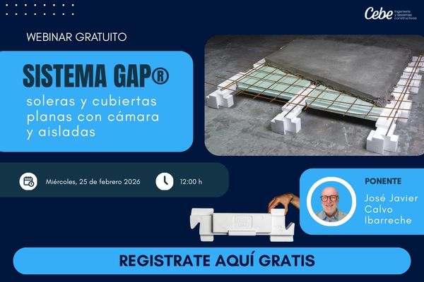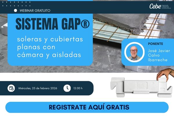 Descubre una solución constructiva innovadora que optimiza diseño, ejecución y eficiencia energética. En este webinar, CEBE Ingeniería (Bilbao) presenta el Sistema GAP®, un sistema de encofrado avanzado para la ejecución de soleras con cámara que integran el aislamiento térmico desde el origen, aplicable también a cubiertas planas.