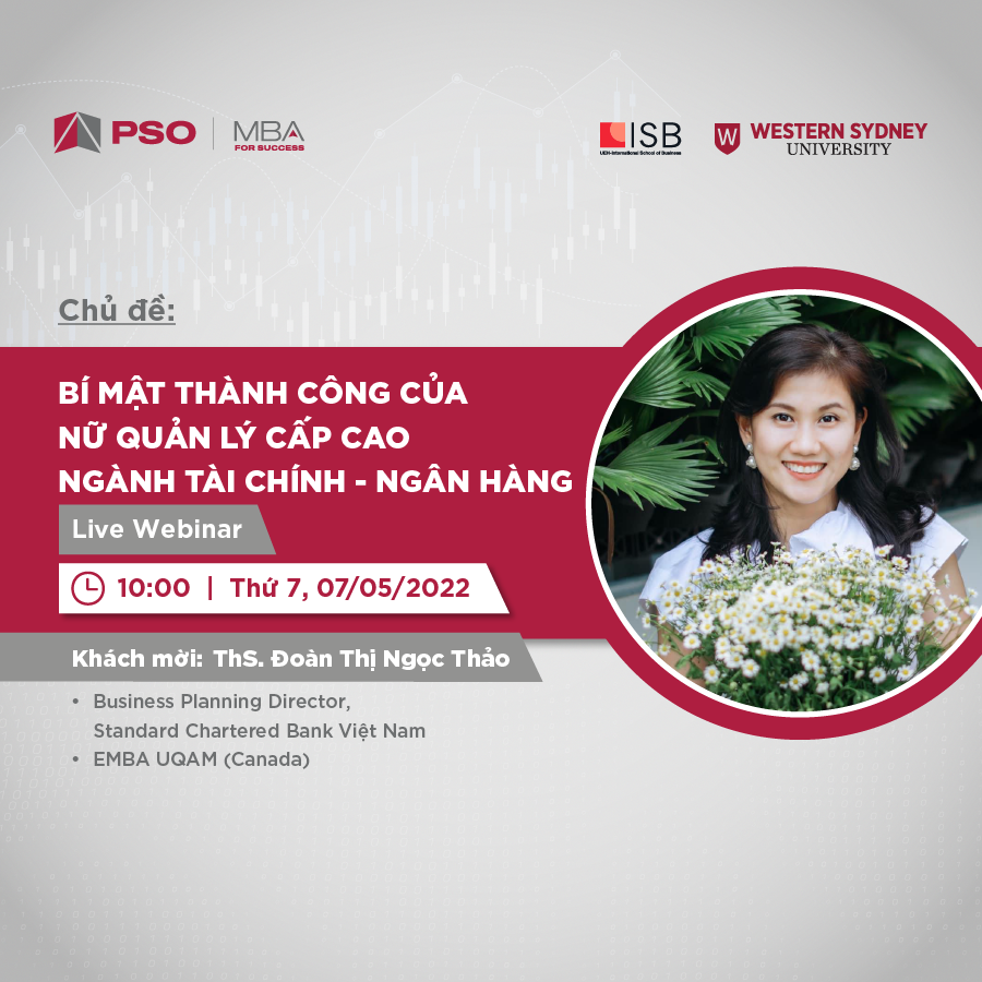 MBA For Success số 19 tiếp tục chào đón một nữ quản lý cấp cao là chuyên gia trong lĩnh vực Tài chính - Ngân hàng - ThS. Đoàn Thị Ngọc Thảo (Jessie) - Giám đốc Hoạch Định Kinh Doanh, Văn phòng Tổng Giám Đốc, Ngân hàng Standard Chartered Bank Việt Nam (Director, Business Planning - CEO office, Standard Chartered Bank Việt Nam). Trong 15 gắn bó với lĩnh vực ngân hàng, chị Ngọc Thảo có hơn 3 năm rời Standard Chartered để đồng hành cùng BNP Paribas ở vị trí Vice President - Senior Relationship Manager, MNC, Giám Đốc Quản Lý Khách Hàng Doanh Nghiệp Đa Quốc Gia giai đoạn 2018 - 2022. Đến đầu 2022, chị quay lại Standard Chartered Bank Việt Nam và đảm nhiệm vị trí Giám Đốc Hoạch Định Chiến Lược Kinh Doanh, văn phòng Tổng Giám Đốc tại ngân hàng Standard Chartered Bank Việt Nam (Director, Business Planning - CEO Office). Đây là một vị trí chiến lược, yêu cầu có kiến thức toàn diện trong lĩnh vực tài chính ngân hàng và là cánh tay phải kề cận với Tổng Giám Đốc.