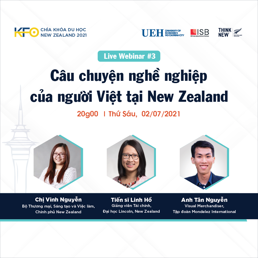 Xoay quanh những vấn đề then chốt trên, chuỗi hội thảo trực tuyến “Chìa khóa du học New Zealand 2021” do Viện ISB-Trường Đại học Kinh tế TP.HCM hợp tác cùng Cơ quan Giáo dục New Zealand (ENZ) thuộc chính phủ New Zealand đồng tổ chức sẽ ra mắt buổi hội thảo số 3 với chủ đề “Câu chuyện nghề nghiệp của người Việt tại New Zealand”.
