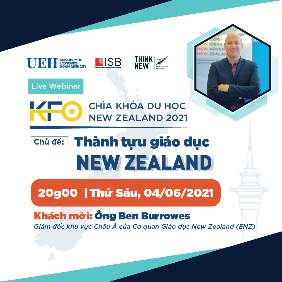 Chuỗi hội thảo trực tuyến “Chìa khóa du học New Zealand 2021” do Viện ISB-Đại học Kinh tế TP.HCM hợp tác cùng Cơ quan Giáo dục New Zealand (ENZ) tổ chức sẽ cung cấp cho bạn trẻ góc nhìn chân thật và chi tiết về nền giáo dục quốc tế tại New Zealand thông qua lăng kính của các đại diện Chính phủ, đại diện trường cùng các cựu du học sinh thành công.